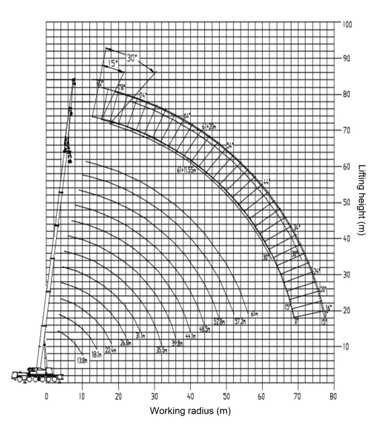 | Main boom + jib(11.55m) | 73.8 | ||||