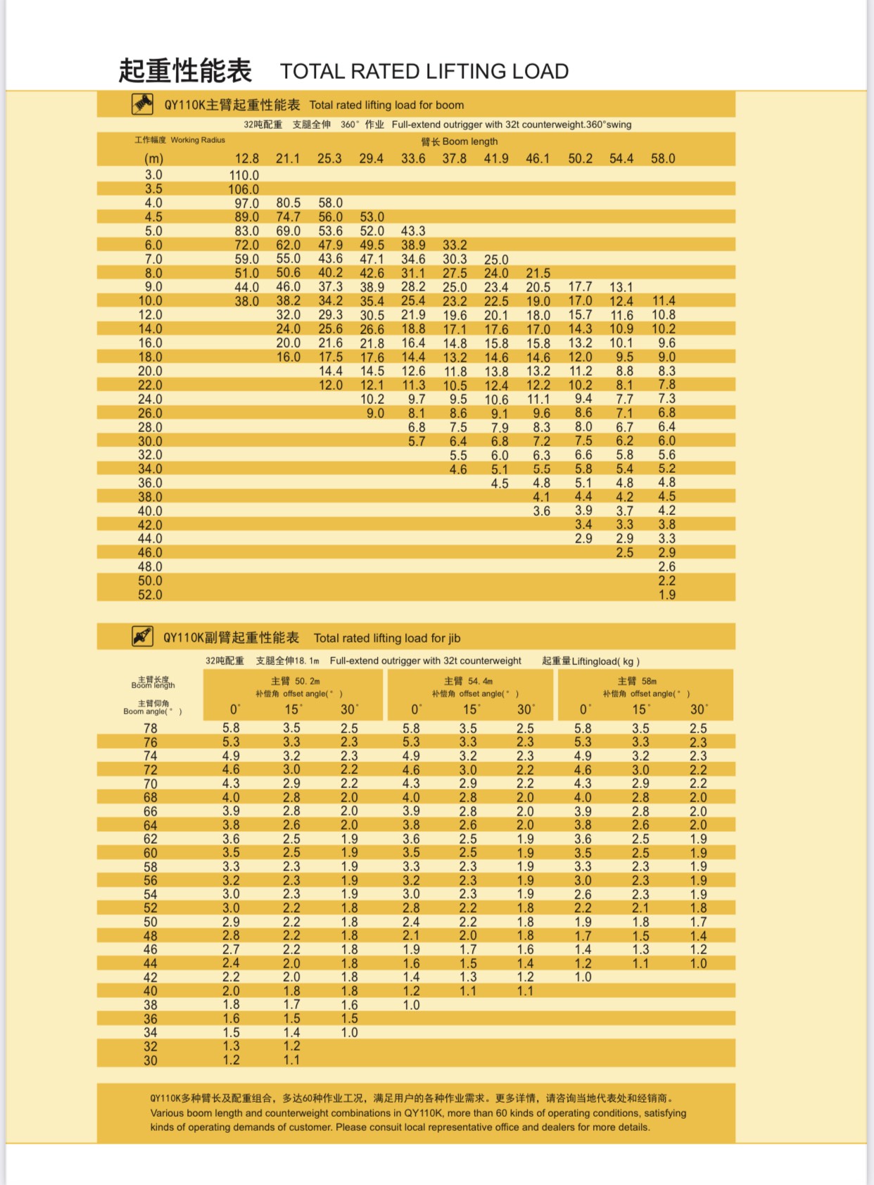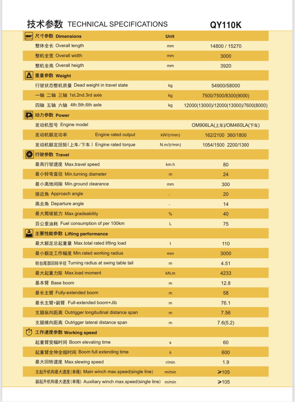 Specifications of XCMG QY110K 110 ton Truck Crane