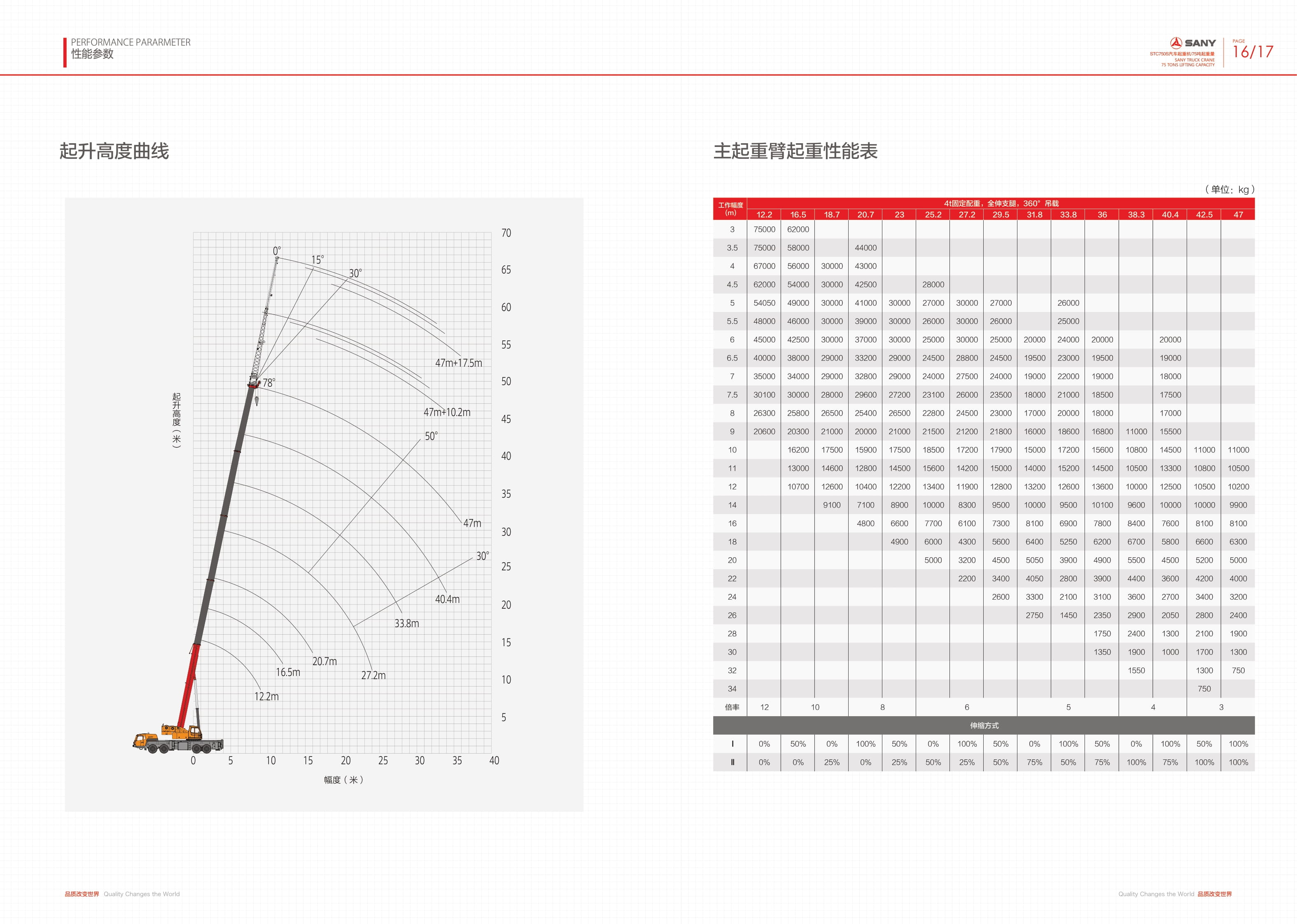 Specification of SANY STC750S Truck Mounted Crane 75 Tons Truck Crane Large Transmission Torque with Sany Truck Crane
