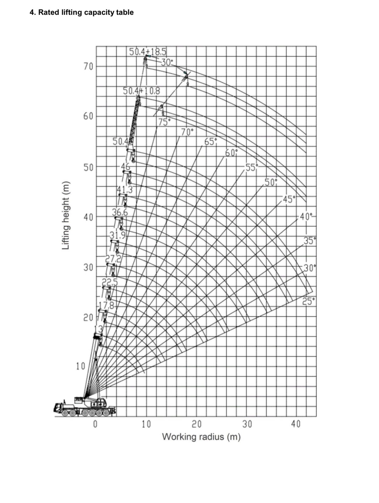 Max. lifting height of main boom m  |